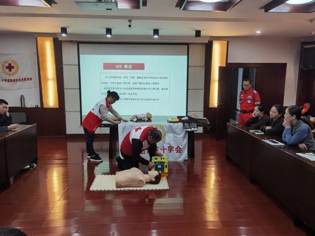 為提高景區(qū)應急救護能力,更好地向景區(qū)游客實施應急處理,提供緊急救助,4月27日下午,紅十字會與中華志愿者協(xié)會應急救援志愿者委員會的專業(yè)救護人員對岳陽樓景區(qū)的工作人員進行了應急救護知識培訓。針對景區(qū)的工作特點,本次重點培訓內(nèi)容為常見急癥(冠心病、腦卒中等)和意外傷害(溺水、中暑等)的應急救護,并重點實操演練了心肺復蘇法、氣道異物梗阻等常用現(xiàn)場應急救援技能,同時對各類傷情以及應急救援處理過程中應注意事項進行了強調(diào),并著重介紹了AED體外除顫儀的使用方法。